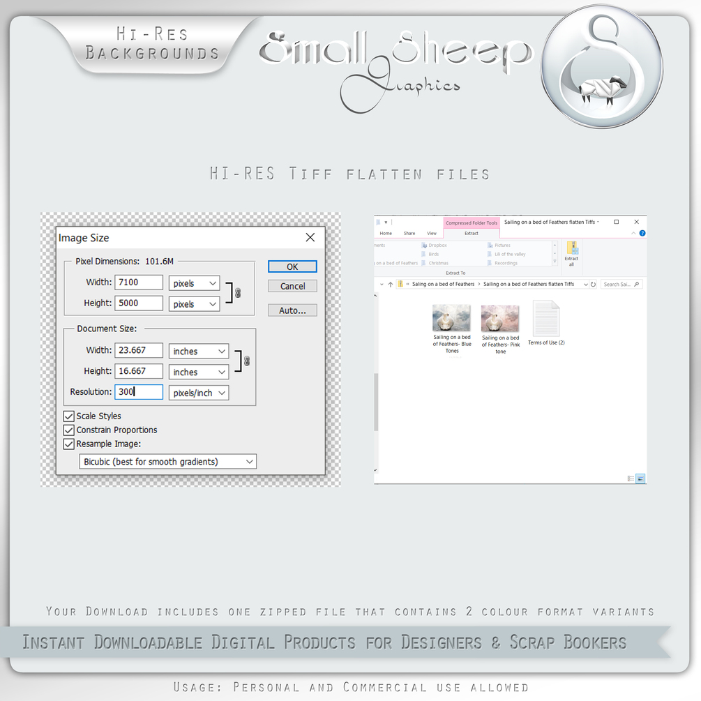 - Flatten Hi-Res Tiffs files. (Masking is required on your part)