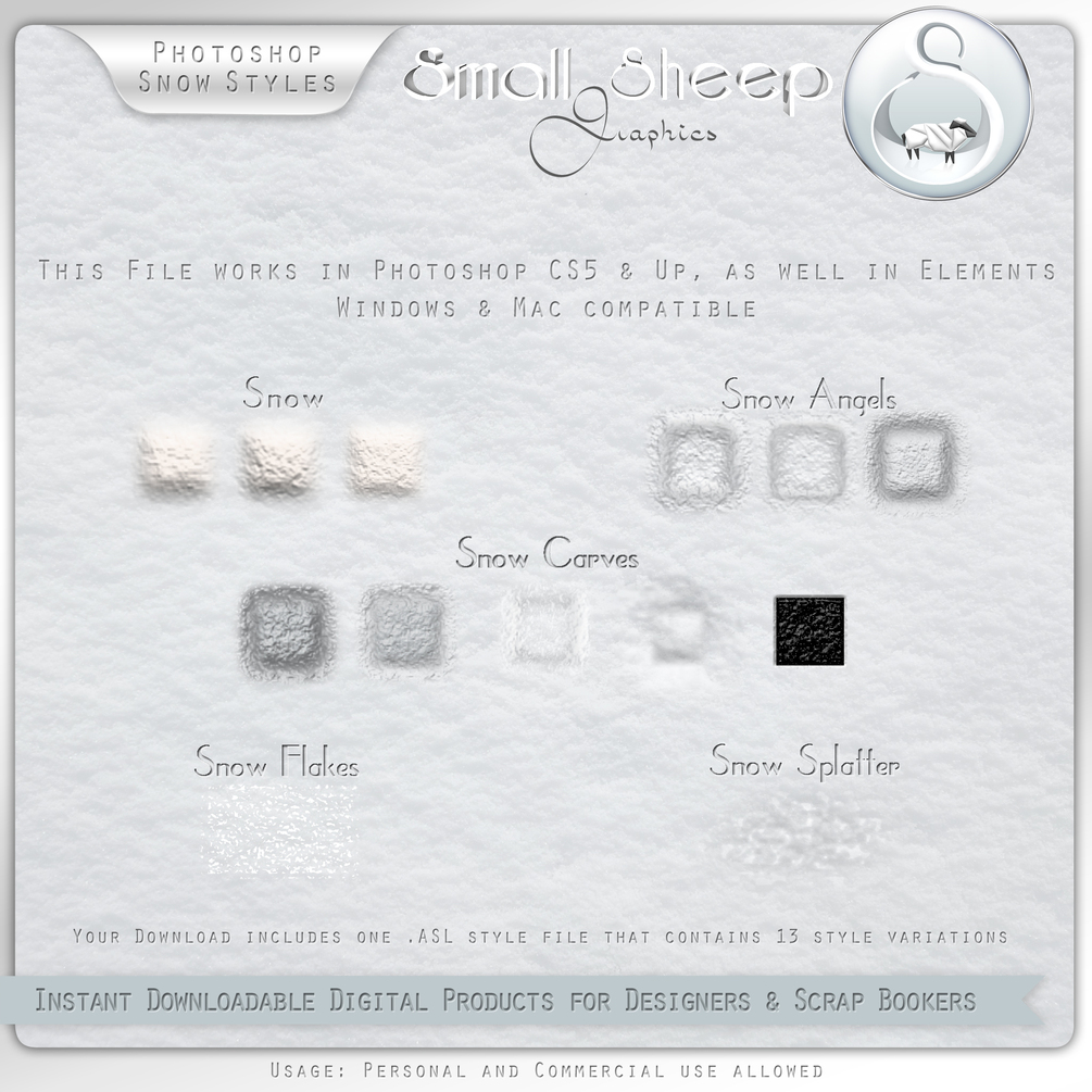 These snow styles effects allows you to use your own brushes. These work great for all kinds of effects from carving out an indentation as if 'sitting in snow', 'snow angels', 'flour angels' 'snow wording'... all kinds of applications. For sand or even cake frosting!